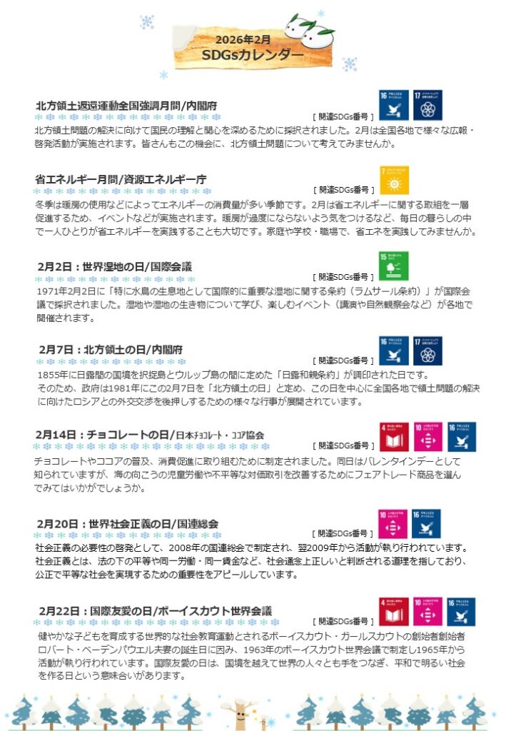 ~ 2026年2月 SDGsカレンダーを更新しました ~