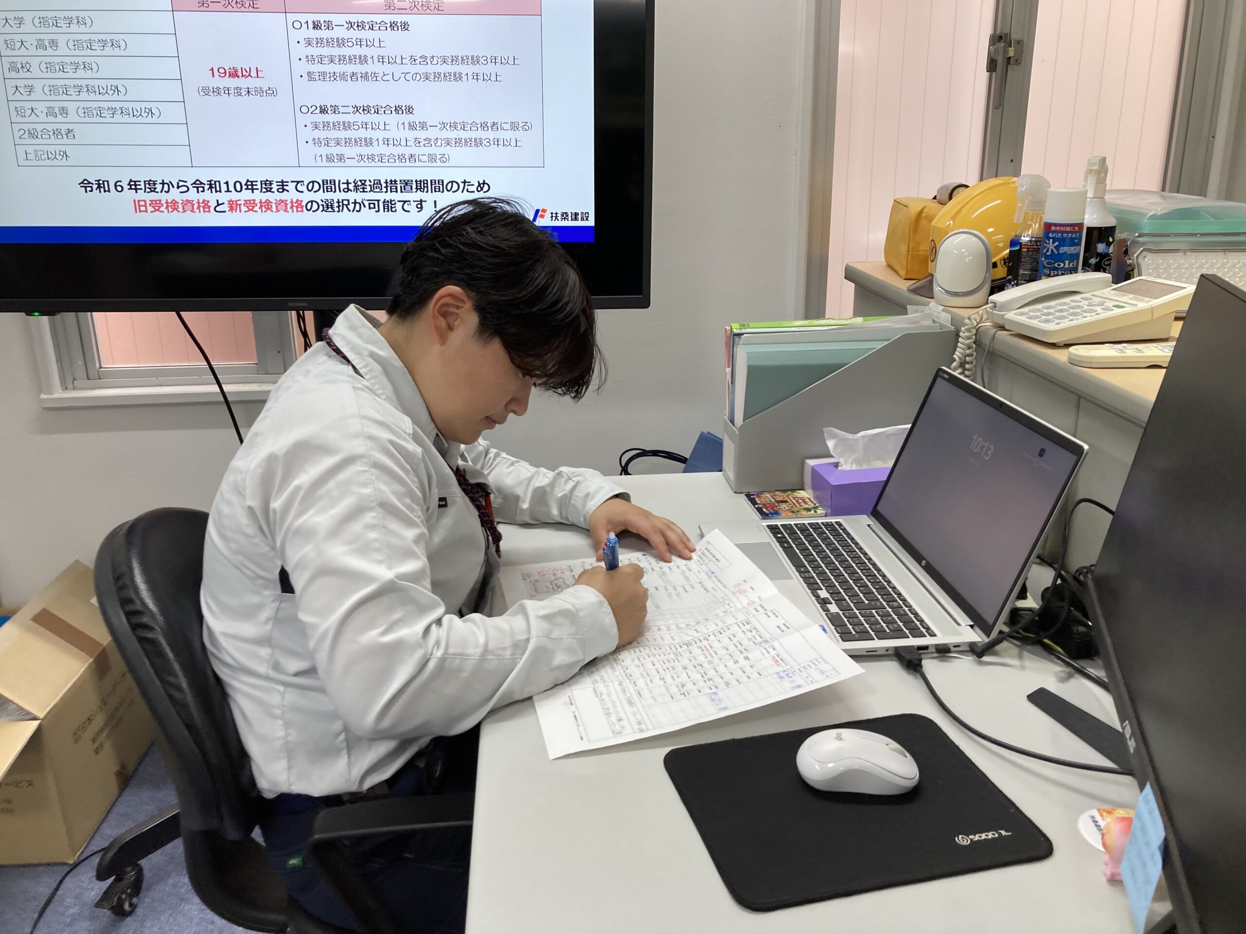 一次試験の合格率が35~50%と決して簡単な試験ではないので、筆記試験の勉強に力をいれていきたいです。勉強した知識は現場で生かせると思うので積極的に勉強していきます。