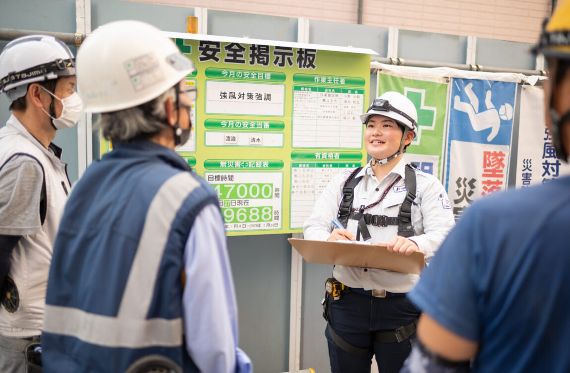 朝礼後には、新規で現場に入場する協力業者さんに新規入場者教育を行ったり、リスクアセスメントシートのチェックをします。