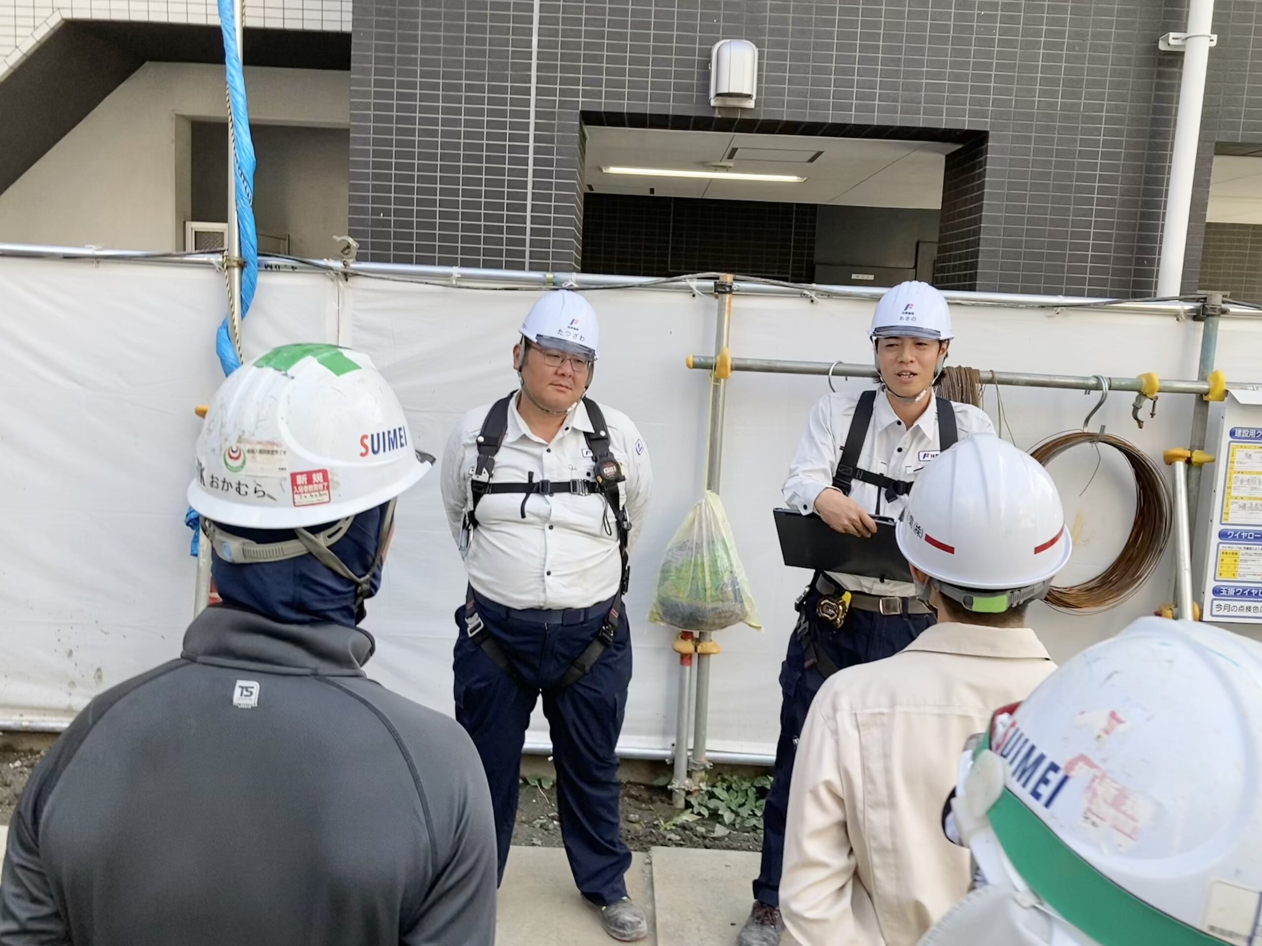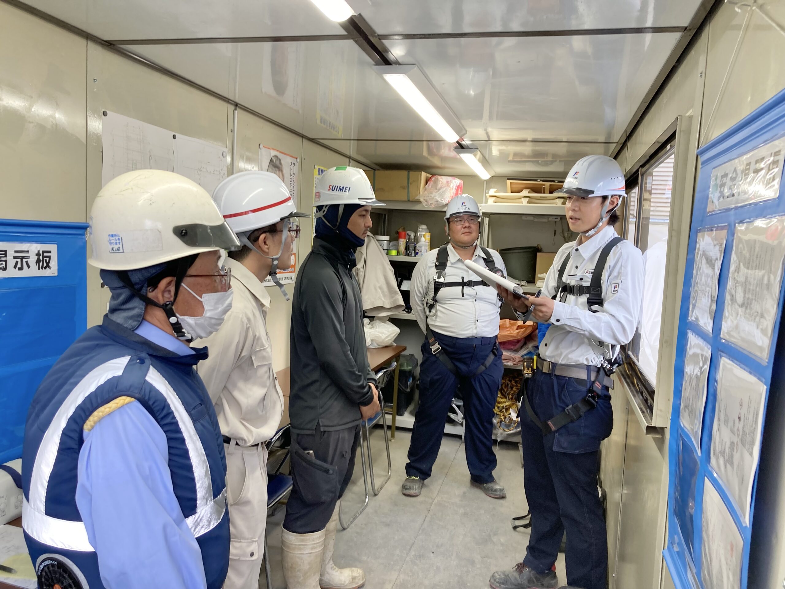 朝礼後には、新規で現場に入場する業者さんに新規入場者教育を行ったり、KYチェックをします。