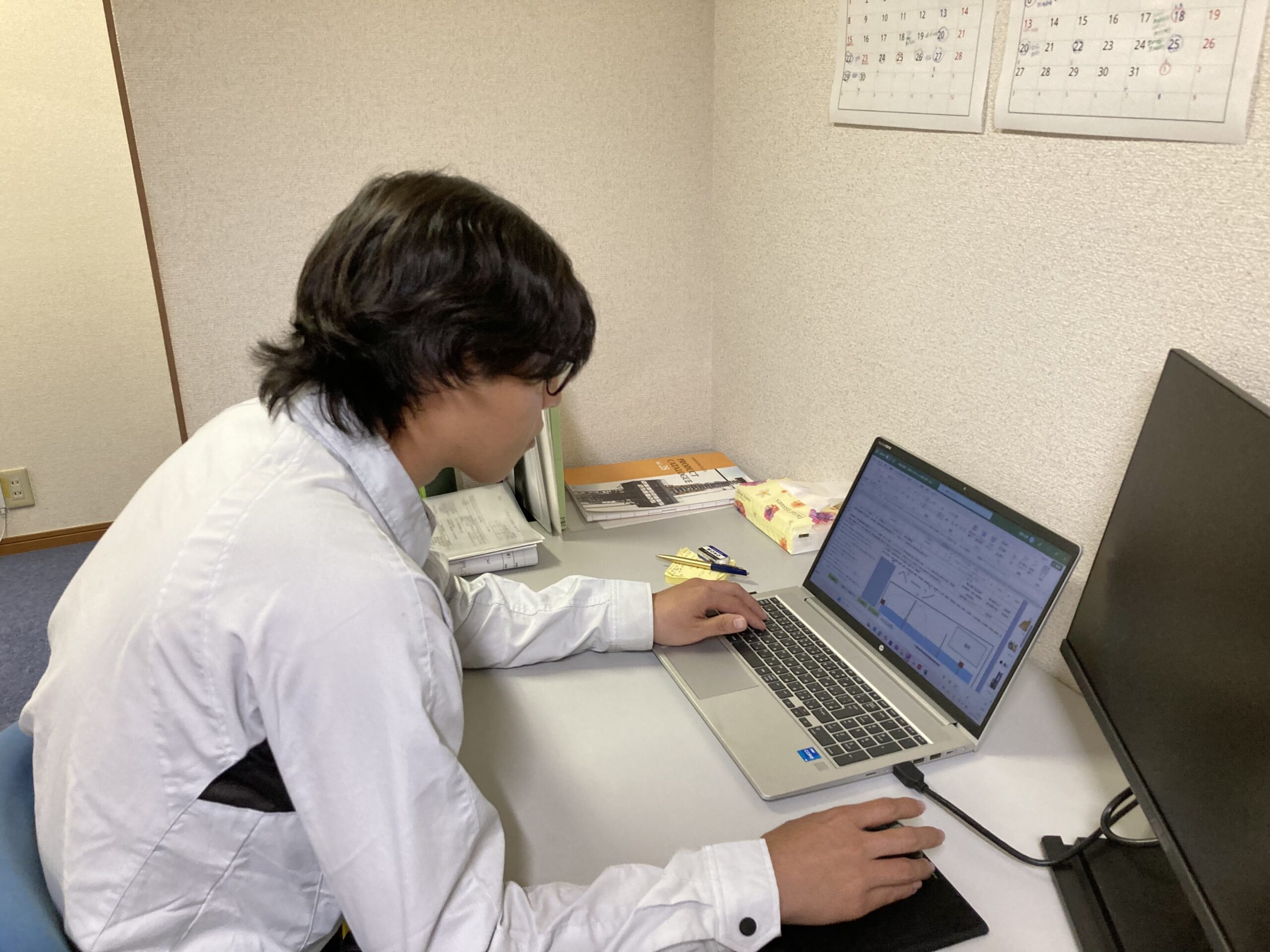現場を進めるためには事務作業もとても重要な仕事です。 この日は施工図を作成しました。